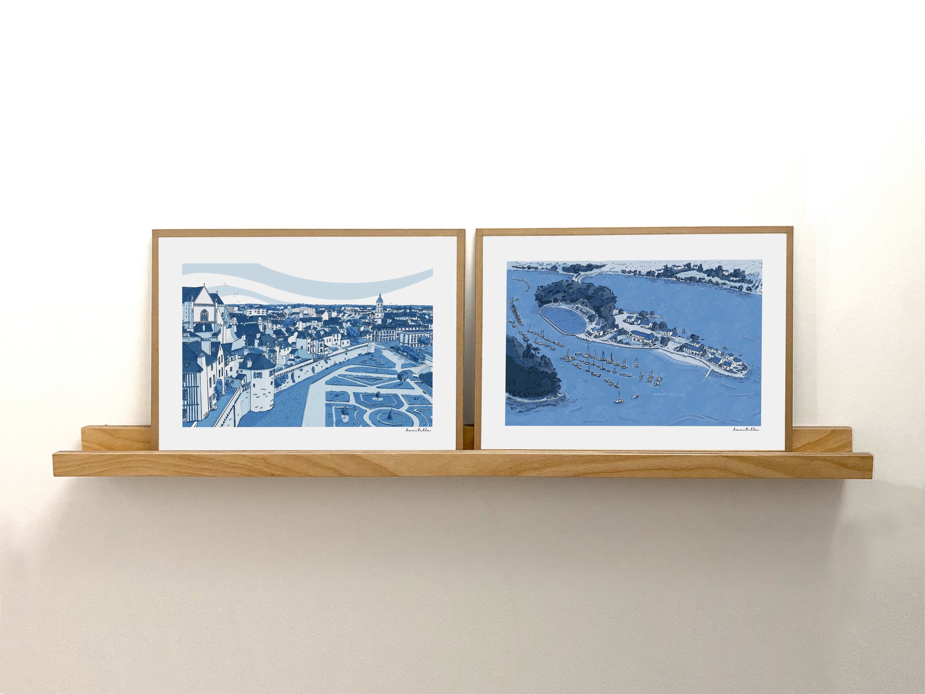 Chez Domitille Illustrations, on met la Bretagne en cadre, avec des affiches qui capturent la poésie des paysages du Morbihan et du Finistère. Que ce soit en petit ou en grand format, chaque création vous invite à un voyage visuel au cœur des embruns, entre terre et mer. Des paysages marins à l'architecture des villes côtières, j'esquisse l’âme de la Bretagne, directement sur ma tablette.